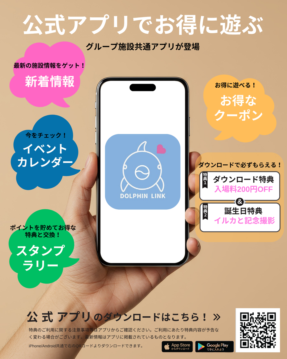 ぜひ公式アプリをゲットして、イルカとお得に遊んでください。